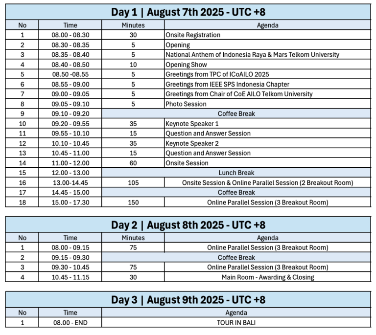Program Program At Glance Timezone Info Central Indonesian Time (WITA) is 8 hours ahead of Coordinated Universal Time (UTC).